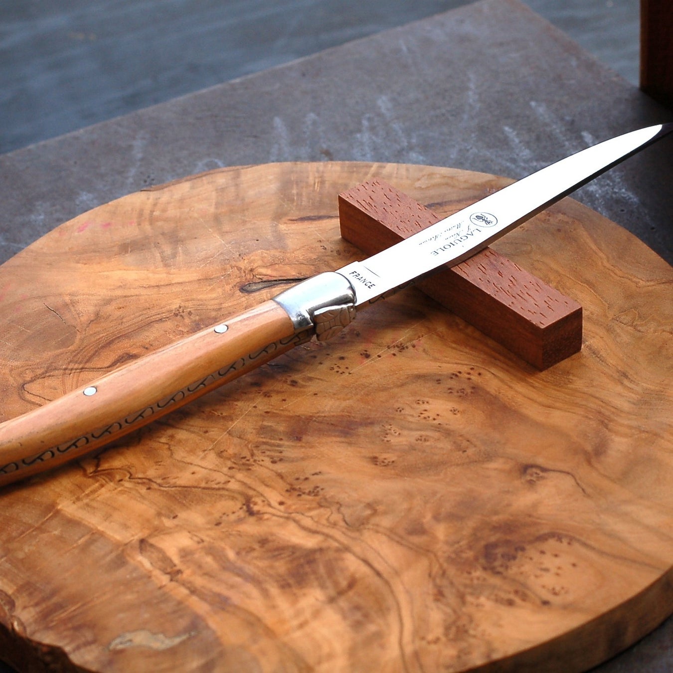 ギターにも使われる美しい木目のブビンガ材カトラリーレストが付いた特別セットのライヨール発売開始