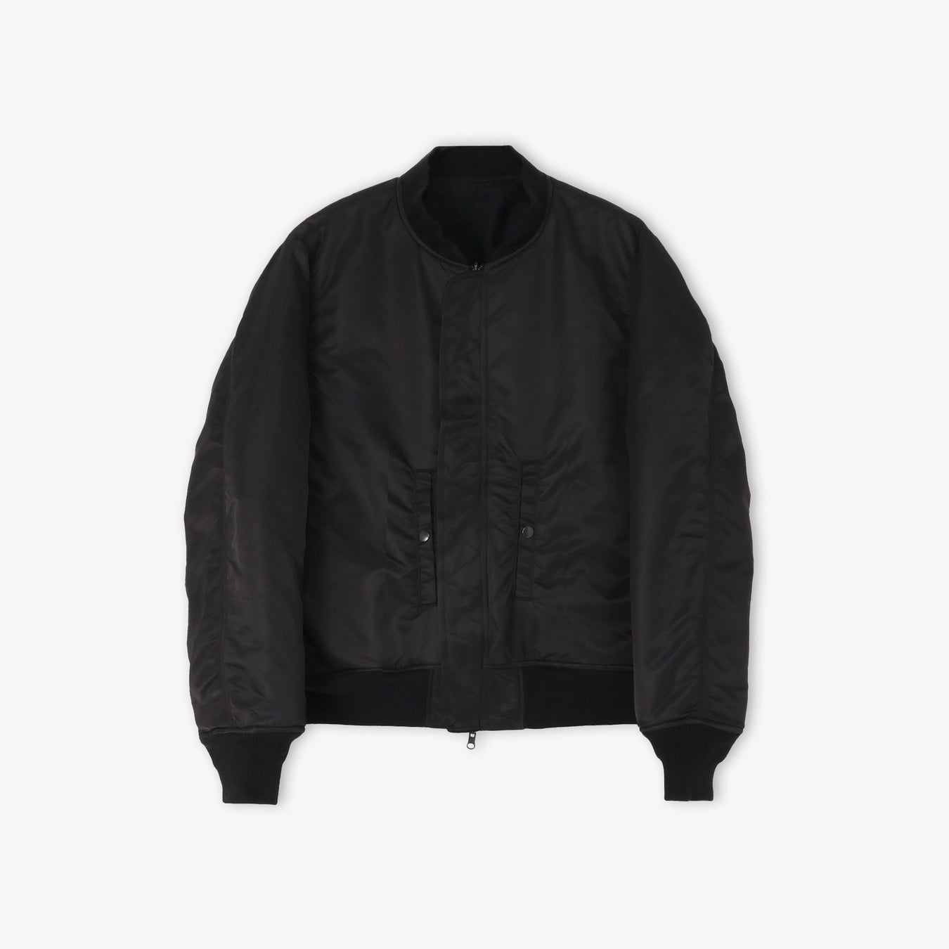 WILDSIDE YOHJI YAMAMOTOローンチ時に発売したレーヨンシャツに続き、ブラックデニムのフライトジャケットが新たに登場いたします。Yohji Yamamoto POUR HOMMEで不動の人気を誇る“牡丹”のアイコンを、手刺繍にてフロントにあしらいました。裏は光沢のある無地のナイロン地で、リバーシブル仕様になっています。