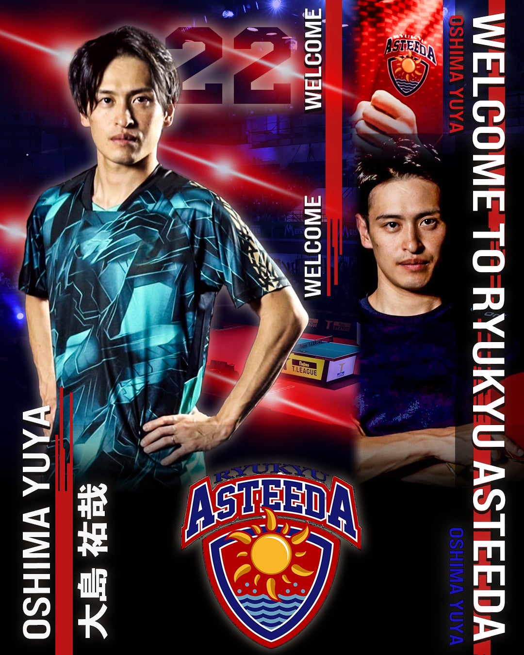 8thシーズン王座奪還に向けて、国際大会の経験も豊富な大島選手との契約を締結いたしましたことを大変嬉しく思います。大島君の入団で琉球アスティーダは更に突き抜けた強いチームになり、盛り上がっていくことに期待しています!今後の活躍に向けて大島選手を全力でサポートしてまいります。