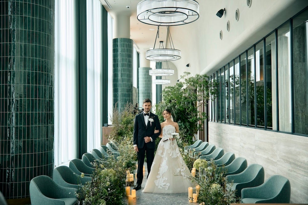 上質で洗練された空間を活かし、ウエディングの会場としてもご利用可能です。天井高6.5mの壮麗なチャペルが生み出す開放感あふれる空間のもと、テーブルセットやプラン、ドレス、食事まで決まりきったパッケージに縛られない、おふたりの理想を叶えるオーダーメイドのウエディングを実現。プライベート感とカジュアルな心地よさが融合する、特別なひとときをお届けします。洗練されたデザインと高品質なサービスのもと、L'AS兼子シェフ監修の料理がウエディングシーンをより一層華やかに、ここでしか叶わない唯一無二の体験をご提供。心に残る一日を演出します。