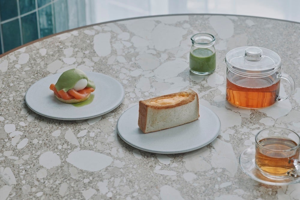 全てのメニュー監修はL'AS兼子 大輔シェフが担当。インテリアデザインはLINE-INC.が監修。施設環境とリンクしたさまざまなグリーンを基調としたデザインは、太陽の光が映えるヘルシーなムードの中にも上質さや艶やかさを持った空間に仕上がっています。