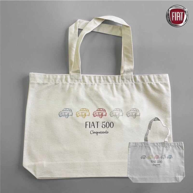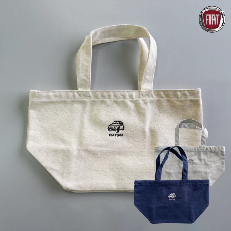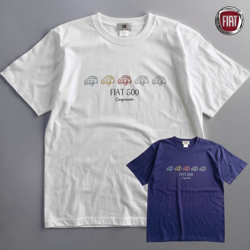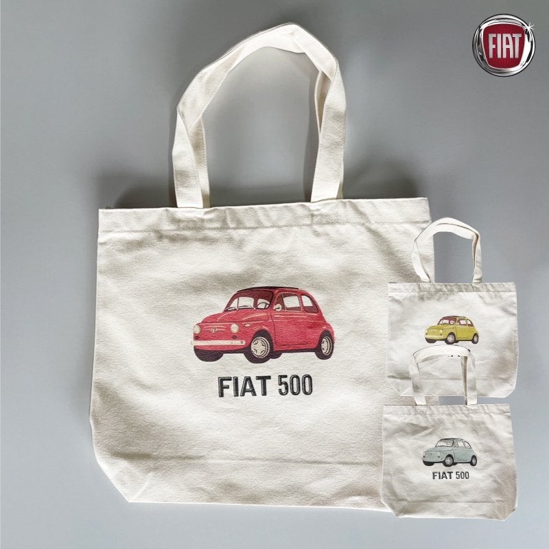 クラシックな見た目で人気の旧車 FIAT 500 Nuova(チンクエチェント)やレトロなトポリーノをモチーフにしたイラストがプリントや刺繍を施しました。