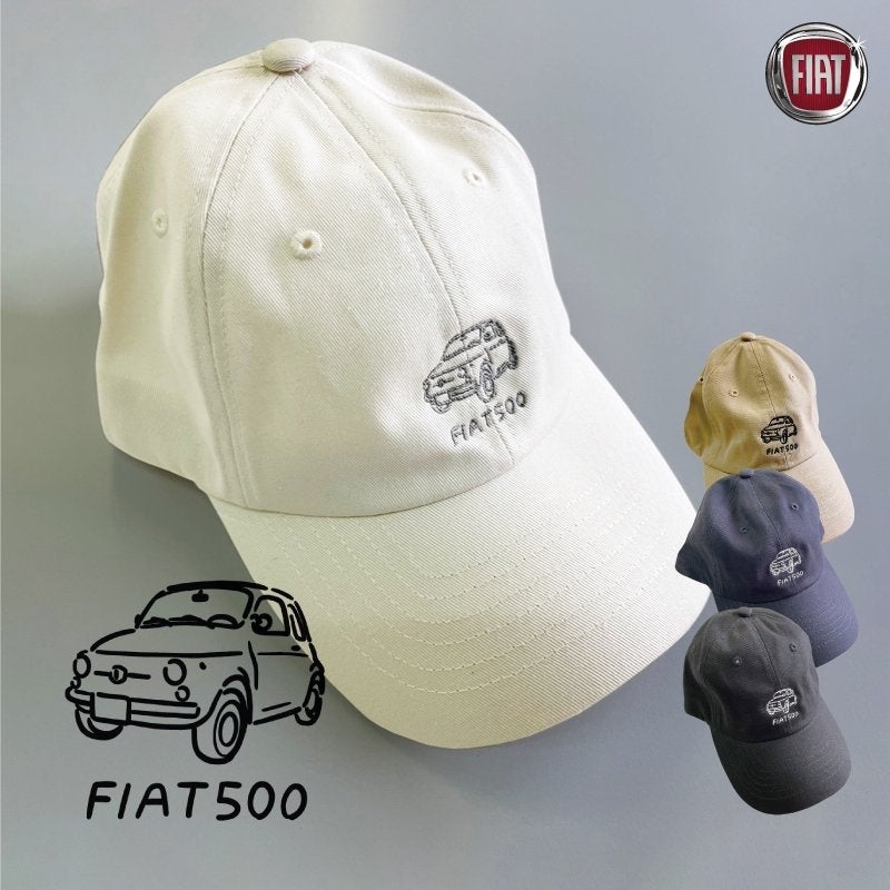 FIAT 500をネコちゃんが運転しているデザインや、レトロなイラスト、ワンポイントの刺繍など、遊び心の溢れるデザインです。