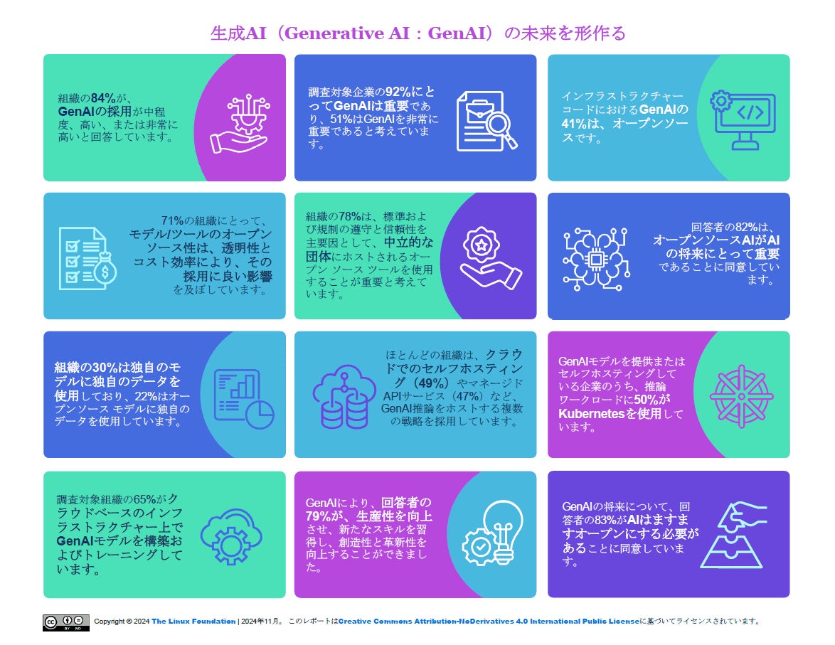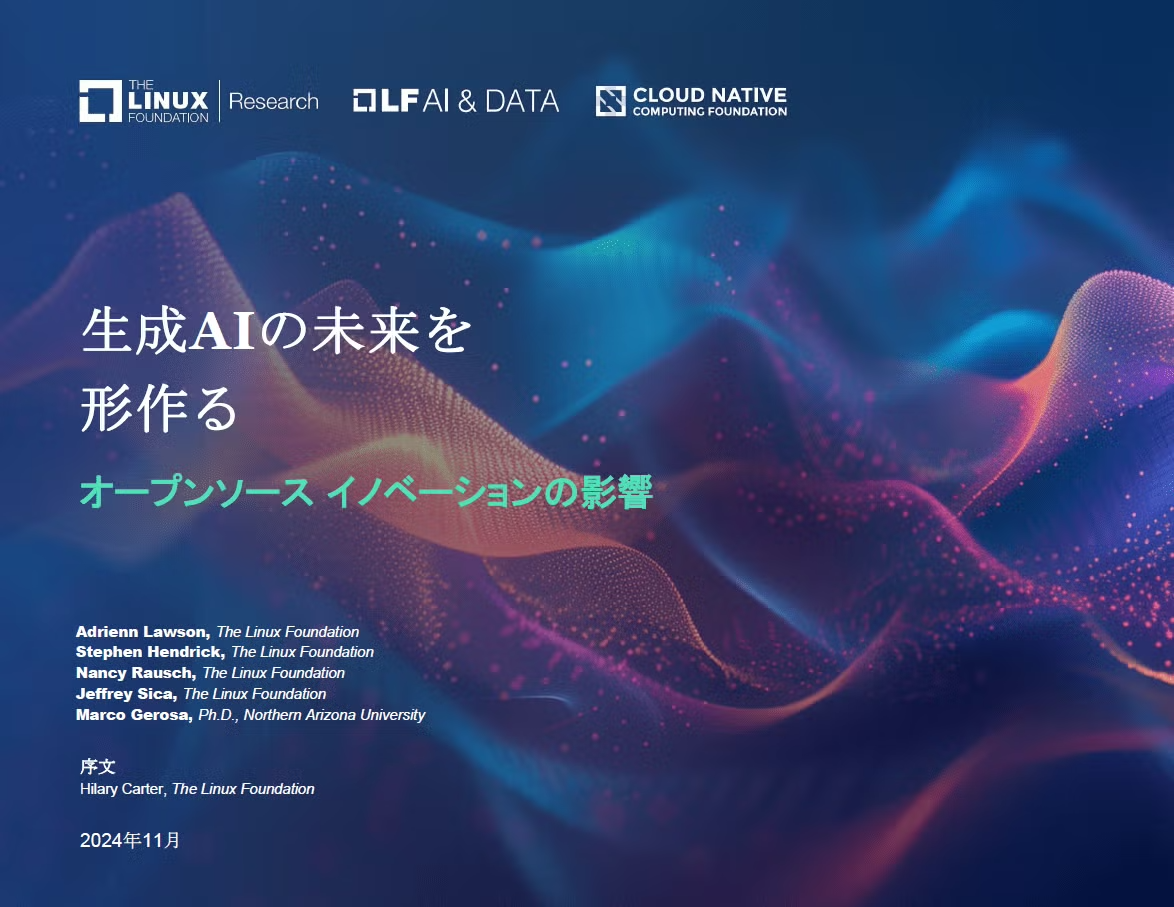 LF AI & Data FoundationとCloud Native Computing Foundation (CNCF) がLinux Foundation Researchと協力して作成した調査レポート「Shaping the Future of Generative AI ー The Impact of Open Source Innovation」の日本語版「生成AIの未来を形作る ー オープンソース イノベーションの影響」が公開されました。