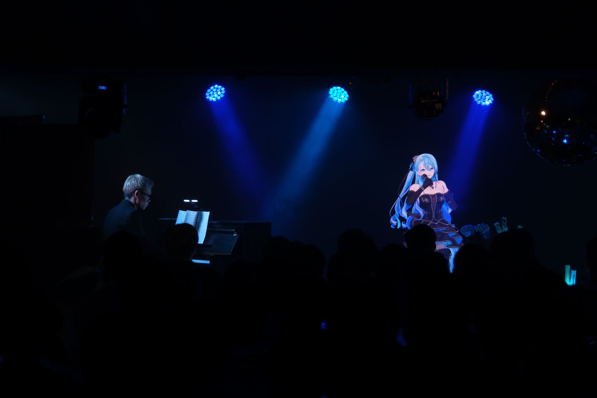 ラストセクションでは、和ロックや重厚なサウンドが特徴の「甲賀忍法帖」や「ETERNAL BLAZE」、オリジナル楽曲「Okeanos」などの楽曲を、ピアノ伴奏ながらも激しさそのままに届けた。流麗なピアノの音色とともに、凪原涼菜の伸びやかな歌声が響きわたった。観客からの盛大な拍手の中、しばしの別れを告げ、舞台は第二部へと進んだ。