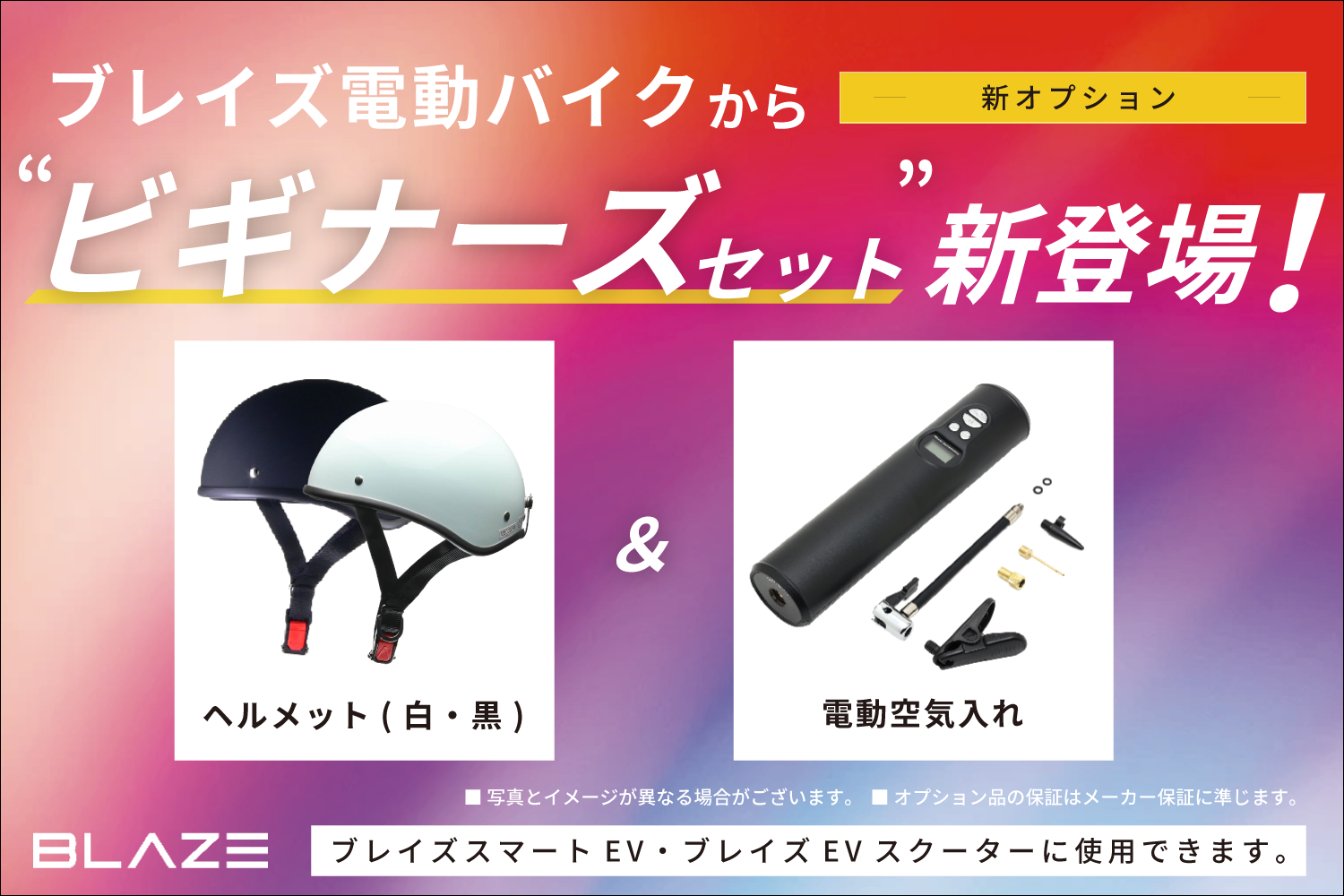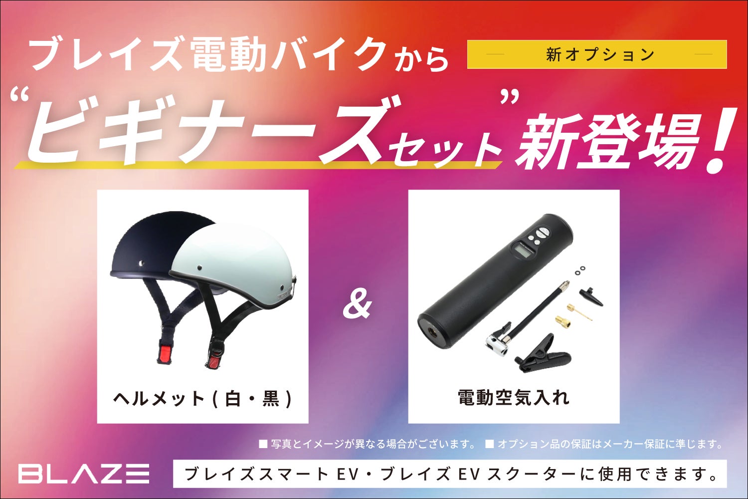 株式会社ブレイズ(愛知県名古屋市、代表取締役:市川秀幸、以下ブレイズ)は、2022年12月1日(木)より、ブレイズの電動バイクおよび電動スクーターをご利用のお客様向けに、ヘルメットと電動空気入れをセットにした「ビギナーズセット」の販売を開始いたしました。