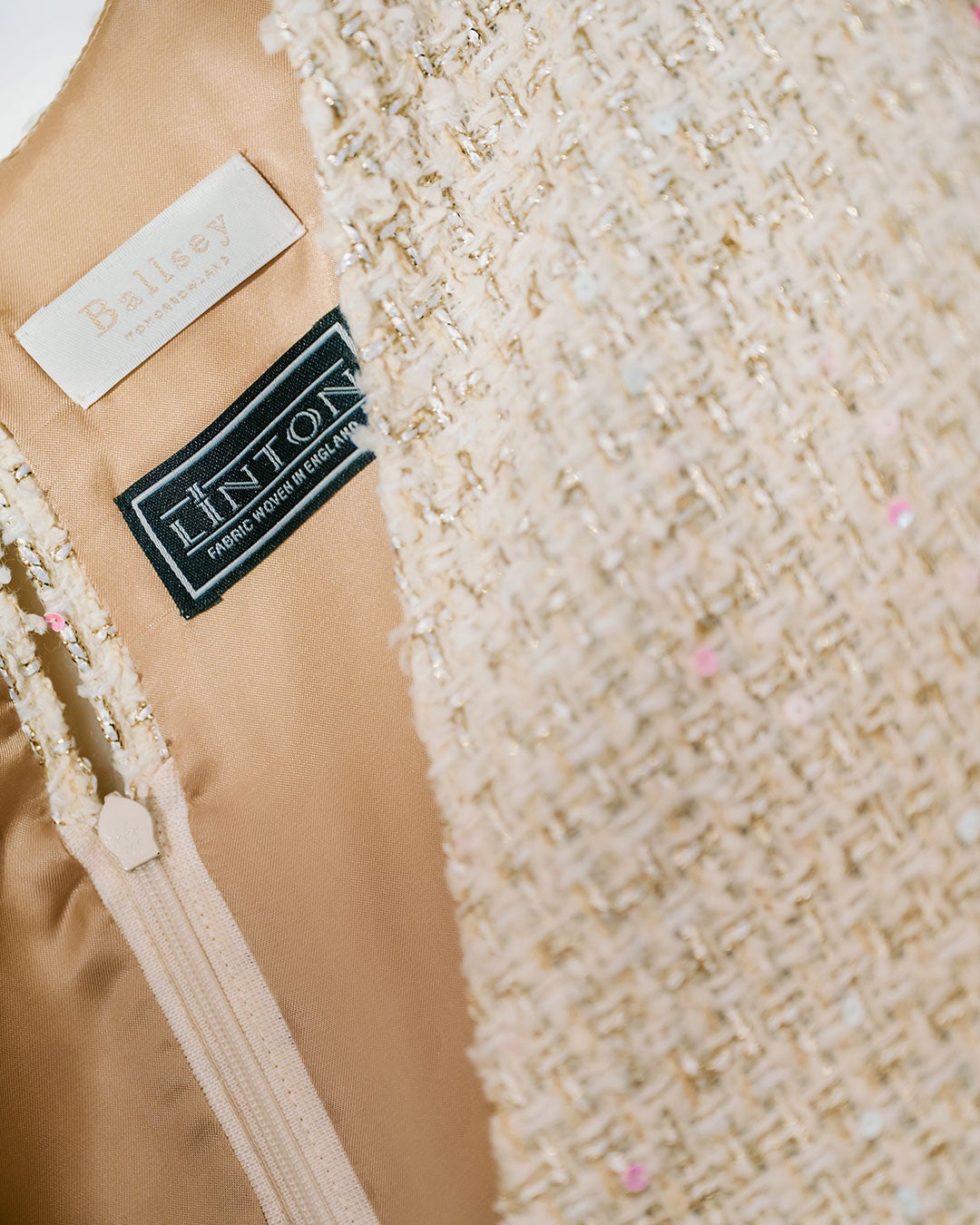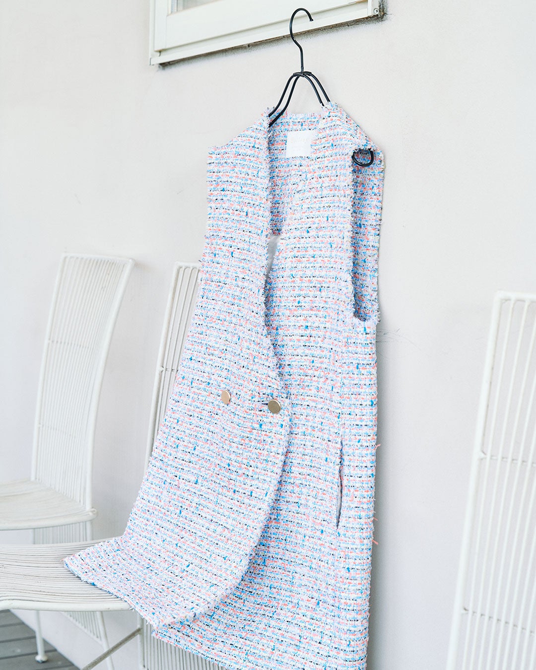 クラシックなツイードを楽しんでいただけるようすっきりとしたワンピースシルエットに仕上げました。