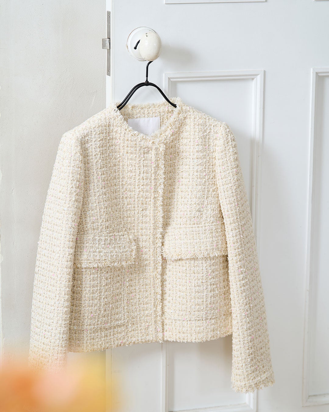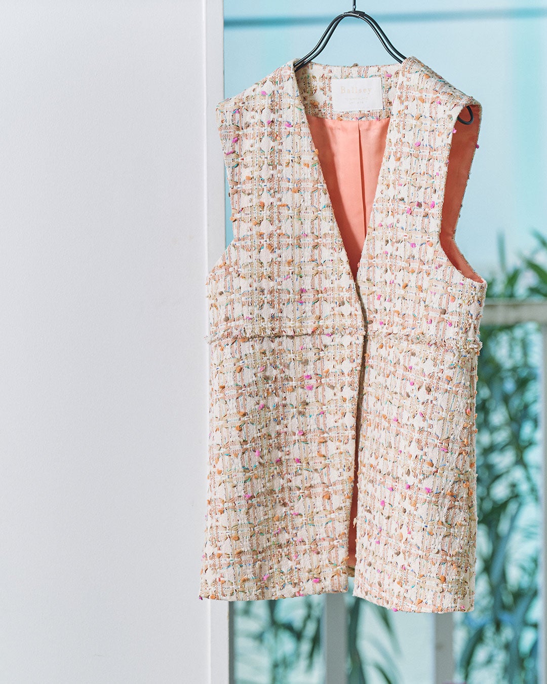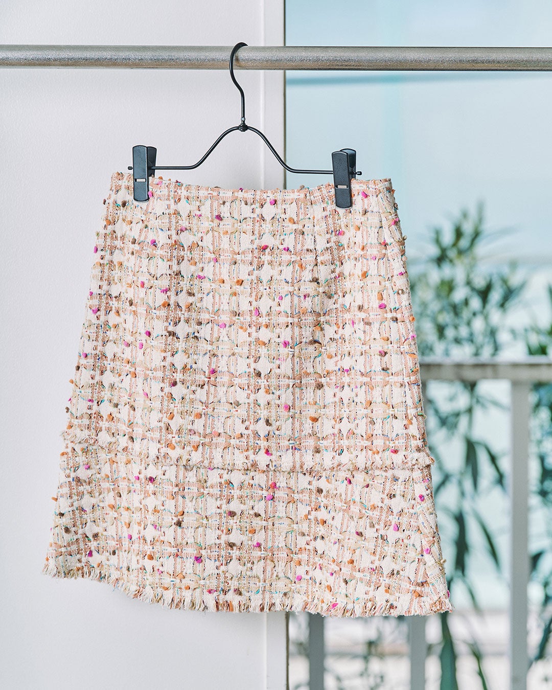 多色の糸を織り交ぜて構成されたツイードは喧騒と魅惑の美しいバランスを感じさせます。