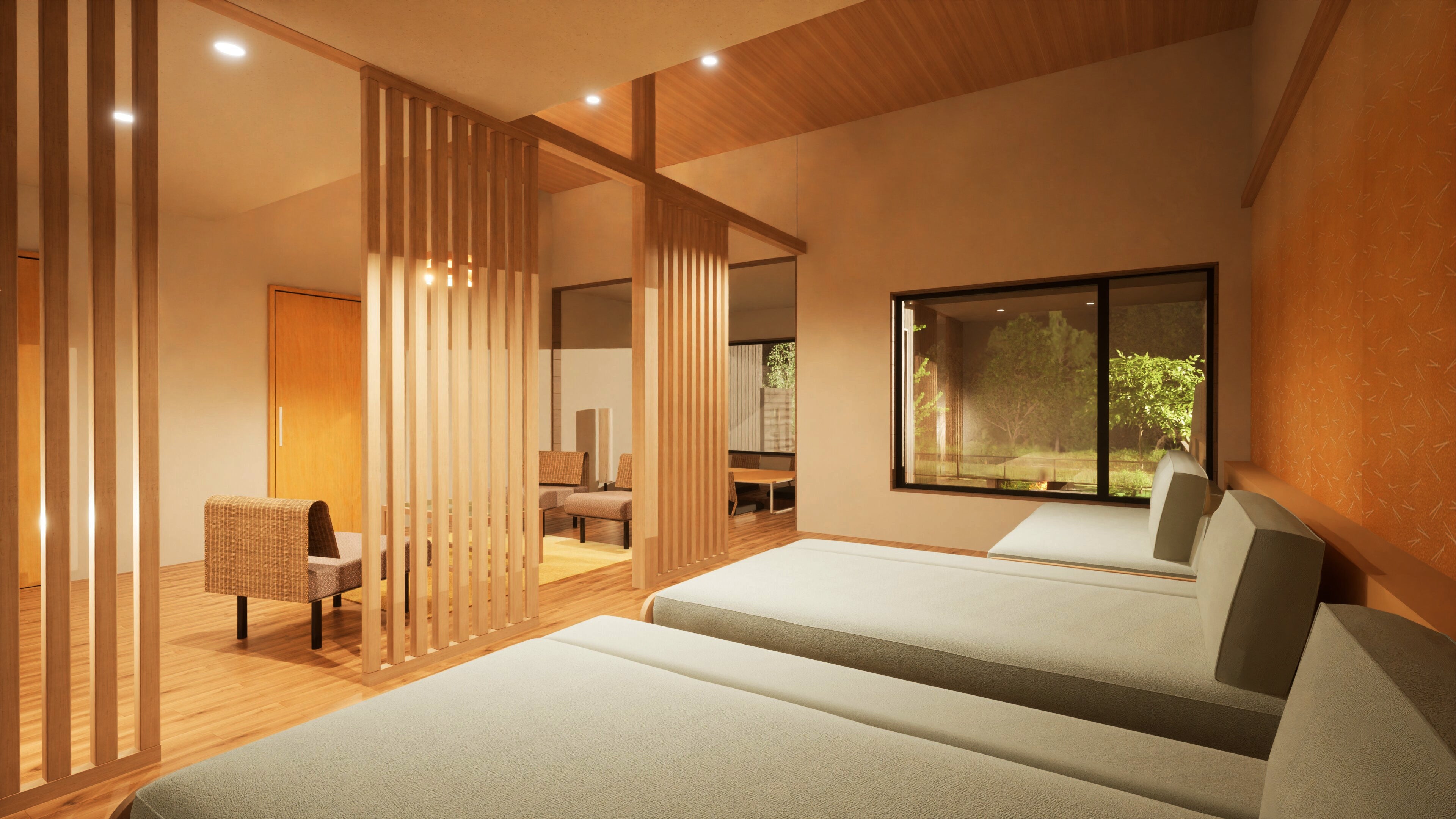 全室離れ型の客室となり、プライベートな空間をお楽しみいただける設計としており、