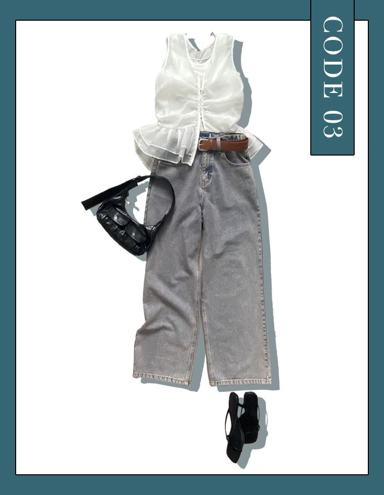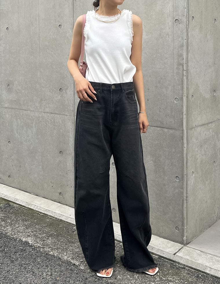 お洒落見えNo.1の大人気デニムに、ヘルシーなフリルアメスリタンクを合わせて。