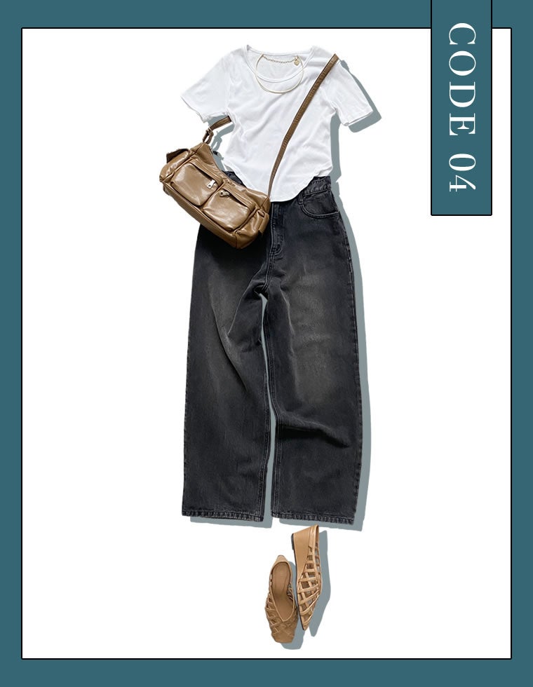 ブルーよりも上品に見せてくれるブラックデニムで、いつものデニムスタイルを格上げ。