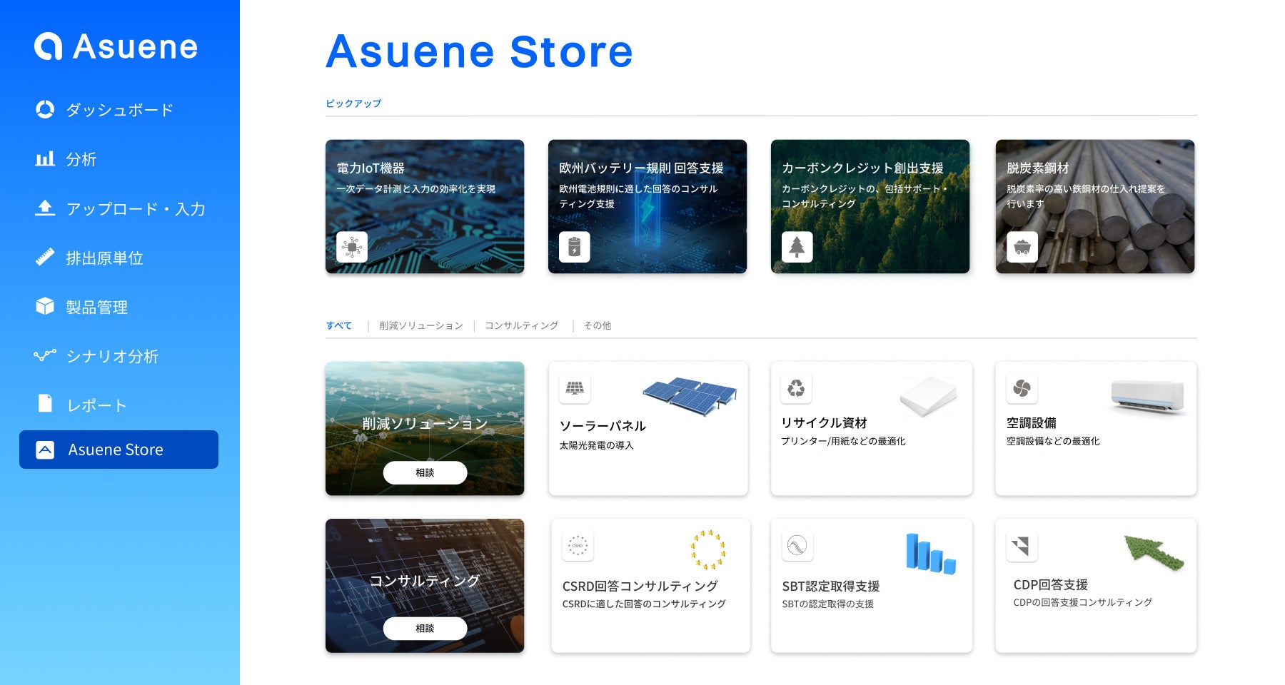 CO2排出量見える化・削減クラウド「アスエネ」、新機能として、日本初のCO2削減ソリューションのマーケットプレイス「アスエネストア」の提供を開始