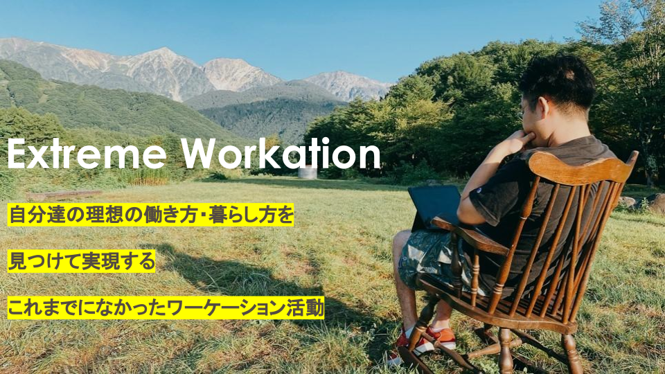 一般的な仕事をする環境や、旅館でのワーケーションなどから一歩踏み出し、好奇心の赴くまま、自分達の知らない働き方を実践して理想の働き方・暮らし方を見つけることを呼んでいます。西出は自身の理想の働き方・暮らし方を見つけ、実現するため、今までにないワーケーション活動に日々取り組んでいます。