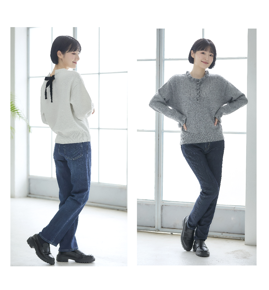 RagOutは「綺麗な私が見つかる」をコンセプトに、オンオフで着られるアイテムの一格上の品質に拘っています。ニットプルオーバーは、環境に配慮したリサイクルポリエステルを使用し地球にも優しい商品です。デニムパンツは、有害な化学物質を含まない証明である「STANDARD 100 by OEKO-TEX®」※に認証されています。