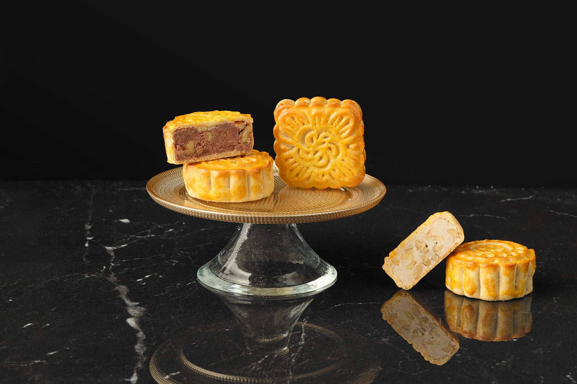 緑豆ムーンケーキ1種「金木犀 生クリーム入り和栗あん×白ねりあん」(486円)などを販売いたします。