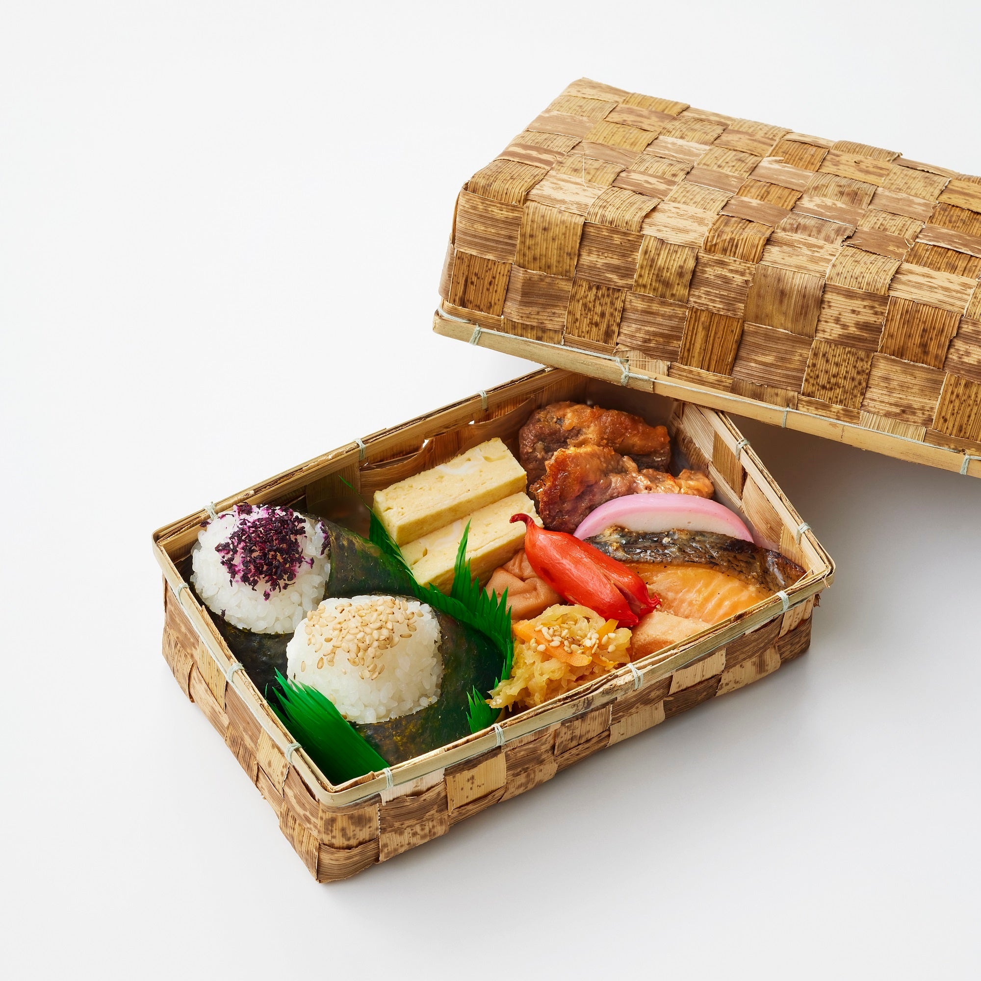 <羽床総本店>竹籠お結び弁当…972円