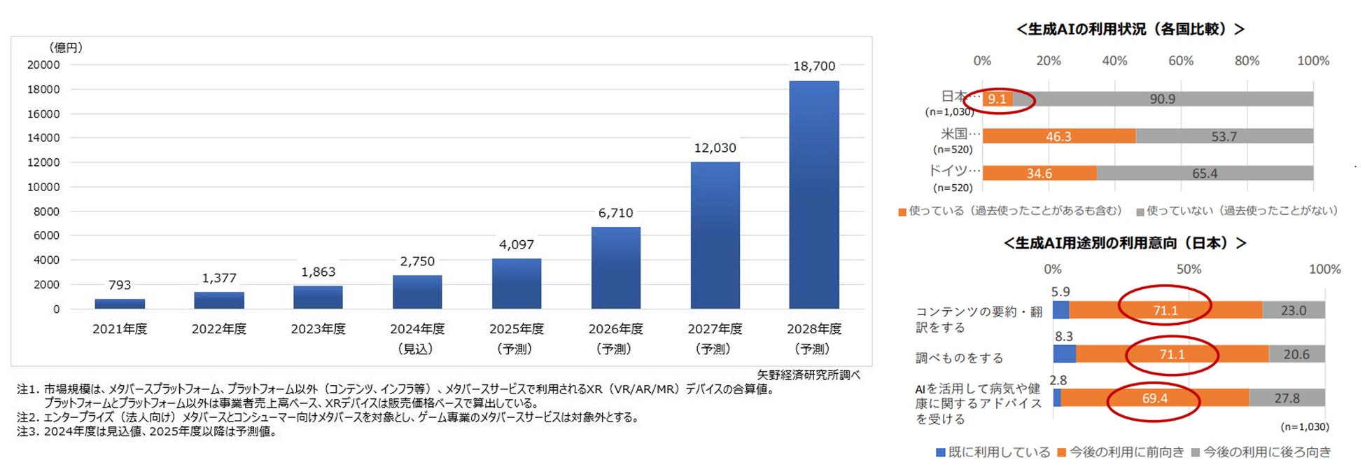 *1(左) 矢野経済研究所「メタバースの国内市場動向調査を実施(2024年)」https://www.yano.co.jp/press-release/show/press_id/3688