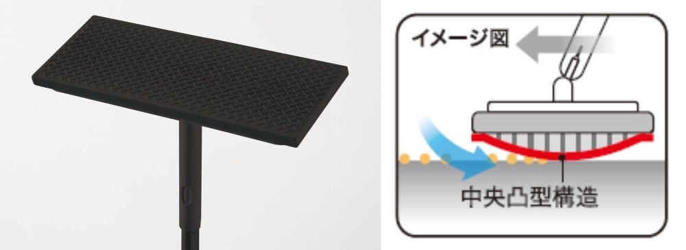 ②ラバーグリップ仕様で、立てかけても倒れにくい。