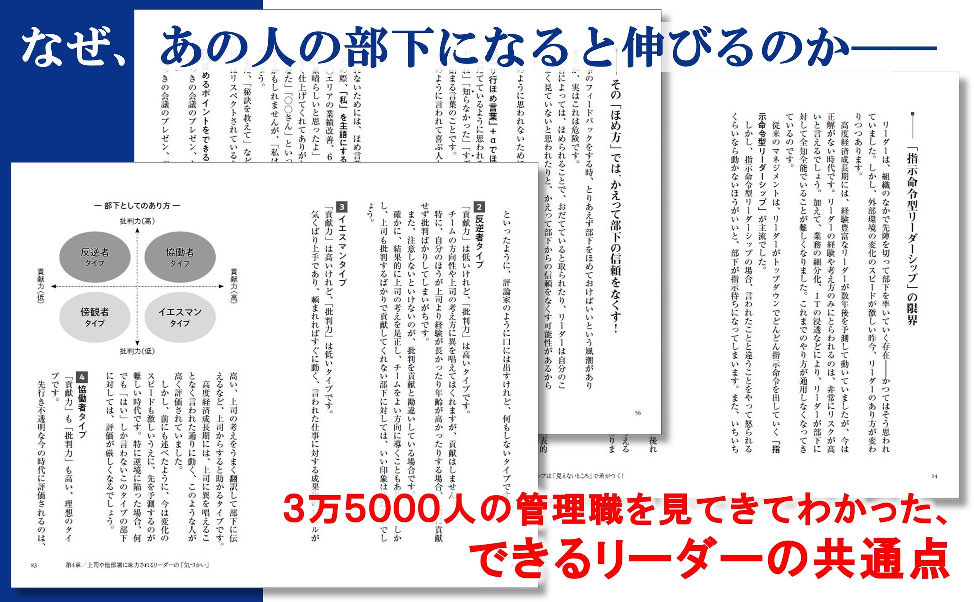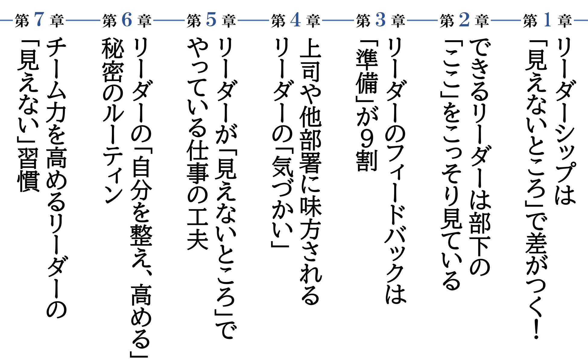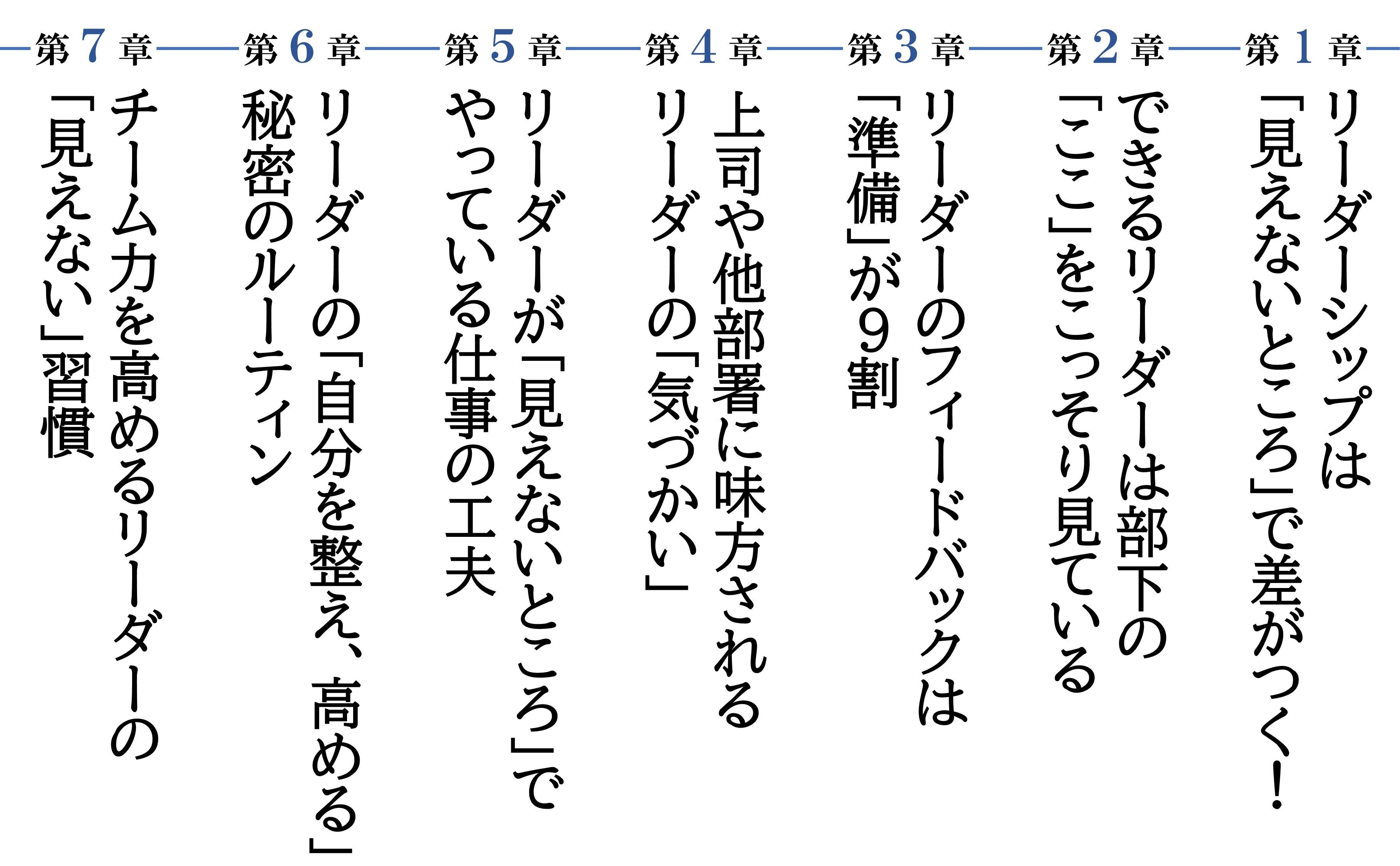 本書は、人材コンサルタントが見つけた「できるリーダー」の共通点、リーダーがあえて「見えないところ」でやっている部下育成やチーム運営のヒントをまとめた一冊です。