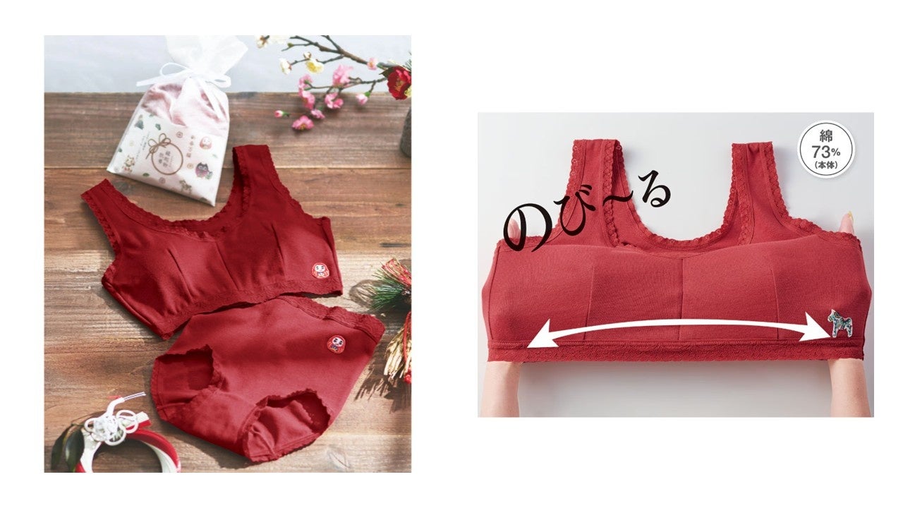 昨年、新年特別企画として縁起物をあしらったお年賀ショーツ・ソックスを販売したところ、お客様から多くの喜びの声をいただきました。今年はブラジャーやパジャマなど全7アイテムに拡大し、「お年賀特集」としてパワーアップしました。