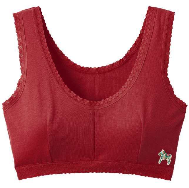「赤い下着を身に着けて新年を迎えると、その年は幸せになる」という言い伝えにならって企画した、やさしく包み込むようなブラジャーです。ショーツとおそろいの縁起のいいモチーフのかわいいアップリケがポイント。ぐーんとよく伸びる綿混素材で締めつけを感じさせないやわらかさが、心地よさを演出します。