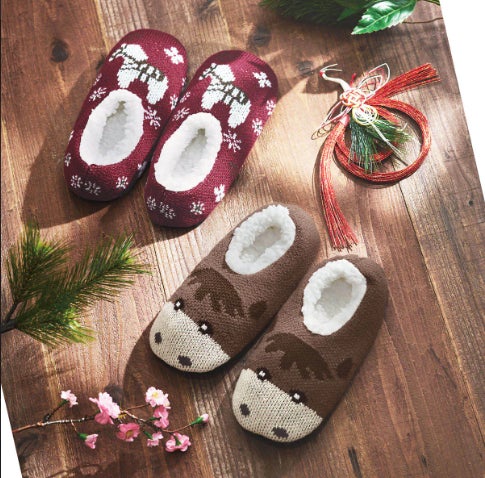 午年にちなんだ2種類のウマ柄のルームスリッパです。フローリングでの歩行を想定して、足底にはすべり止め付き。年始の1足として是非お役立てください。