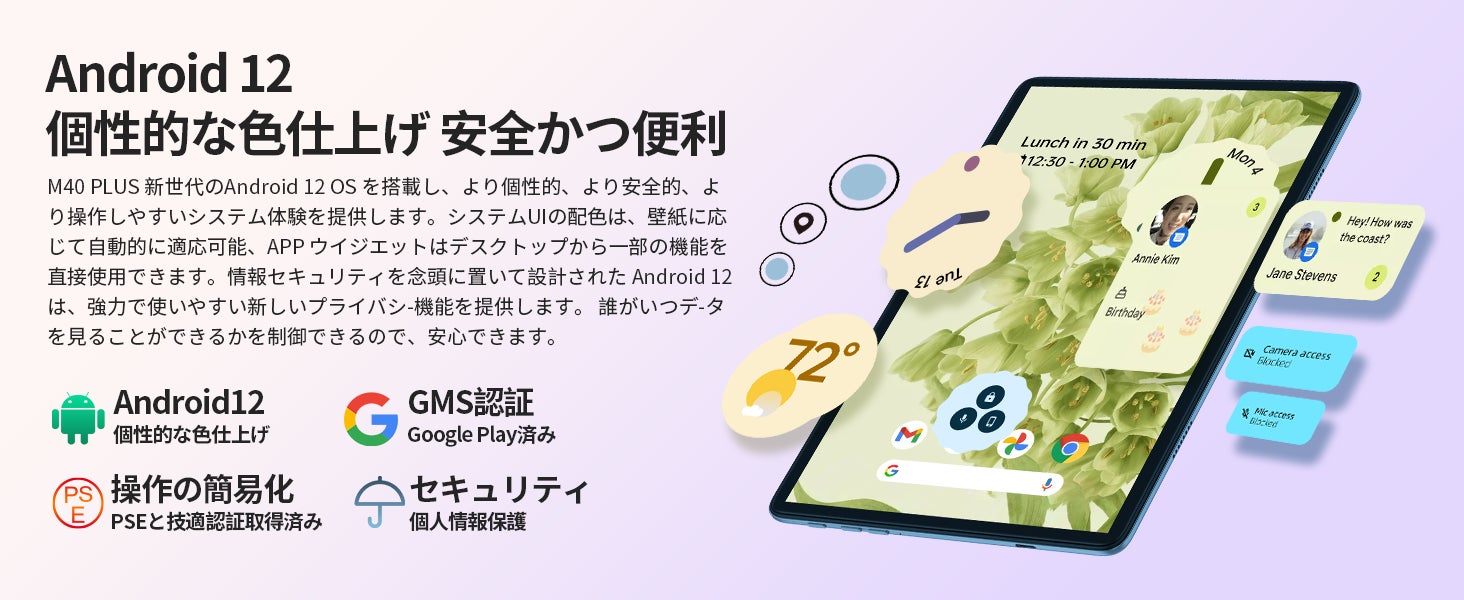 新しいAndroid 12 OSを搭載し、より個性的、より安全的、より操作しやすいシステム体験を提供します。システムUIの配色は、壁紙に応じて自動的に適応可能、APPウィジェットはデスクトップから一部の機能を直接使用できます。情報セキュリティを念頭に置いて設計された Android 12 は、強力で使いやすい新しいプライバシー機能を提供します。 誰がいつデータを見ることができるかを制御できるので、安心できます。