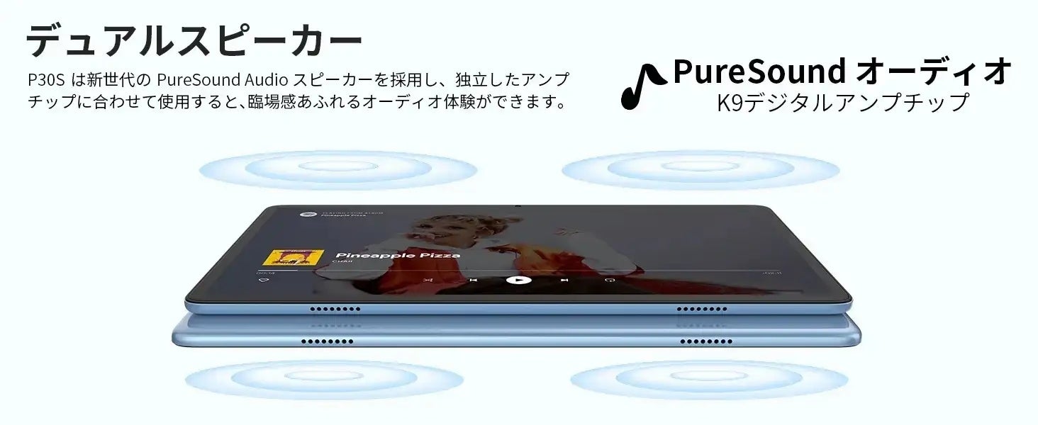 P30Sは、新世代のPureSound Audio スピーカーを採用し、独立したアンプチップに合わせて使用すると、臨場感あふれるオーディオ体験ができます。3.5mmヘッドフォンジャックを備え、様々なユーザーの好みに対応できます。また、保護者が懸念するタブレットの使用時間や使用アプリの選択などの問題点に対応し、新たな児童守護機能を開発しました。学びと遊びをバランスよく楽しめるタブレットになります。