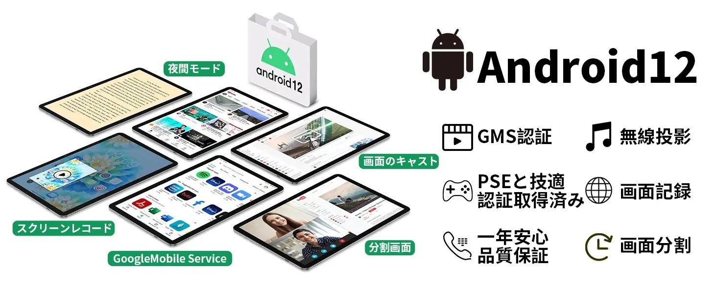 10インチ / Android 12 / 4GB RAM+64GB ROM+1TB拡張 / WIFIモデル / 3.5mmヘッドホン / GPS機能サポート