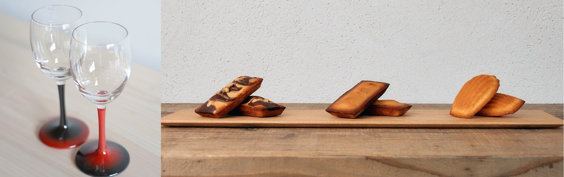その他にも、丸嘉小坂漆器店の木曽漆器のグラスや松本市の人気パティスリー「sweets & story IKUE」のスイーツの取扱いもいたします。