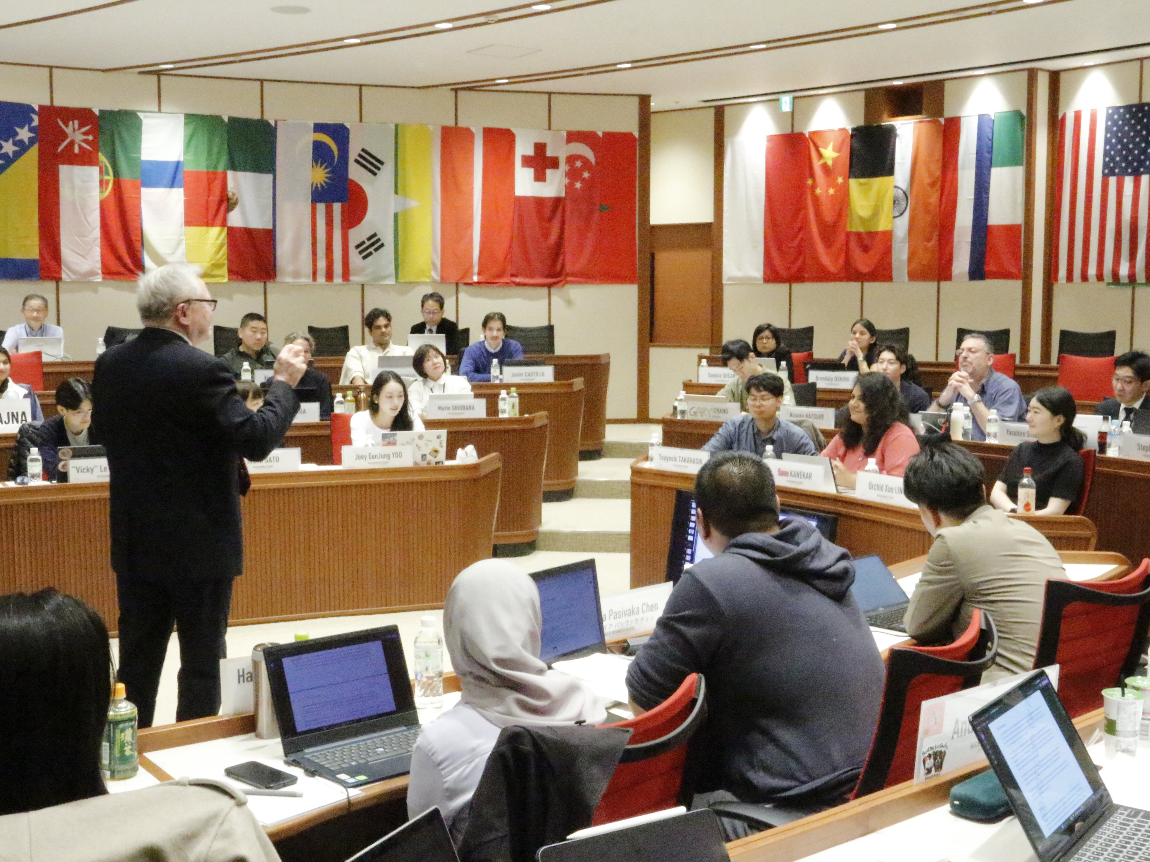 また、2025年のLHPTには、新しく本学教授として着任したスイス・IMDビジネススクール前教授Ralf Boscheckが登壇しました。Boscheck教授のセッションでは、国際的な複雑性から生じるリーダーシップの課題と、共通の社会課題に取り組む際に組織が直面する責任についてのグループ討議やクラス全体での討議が展開されました。