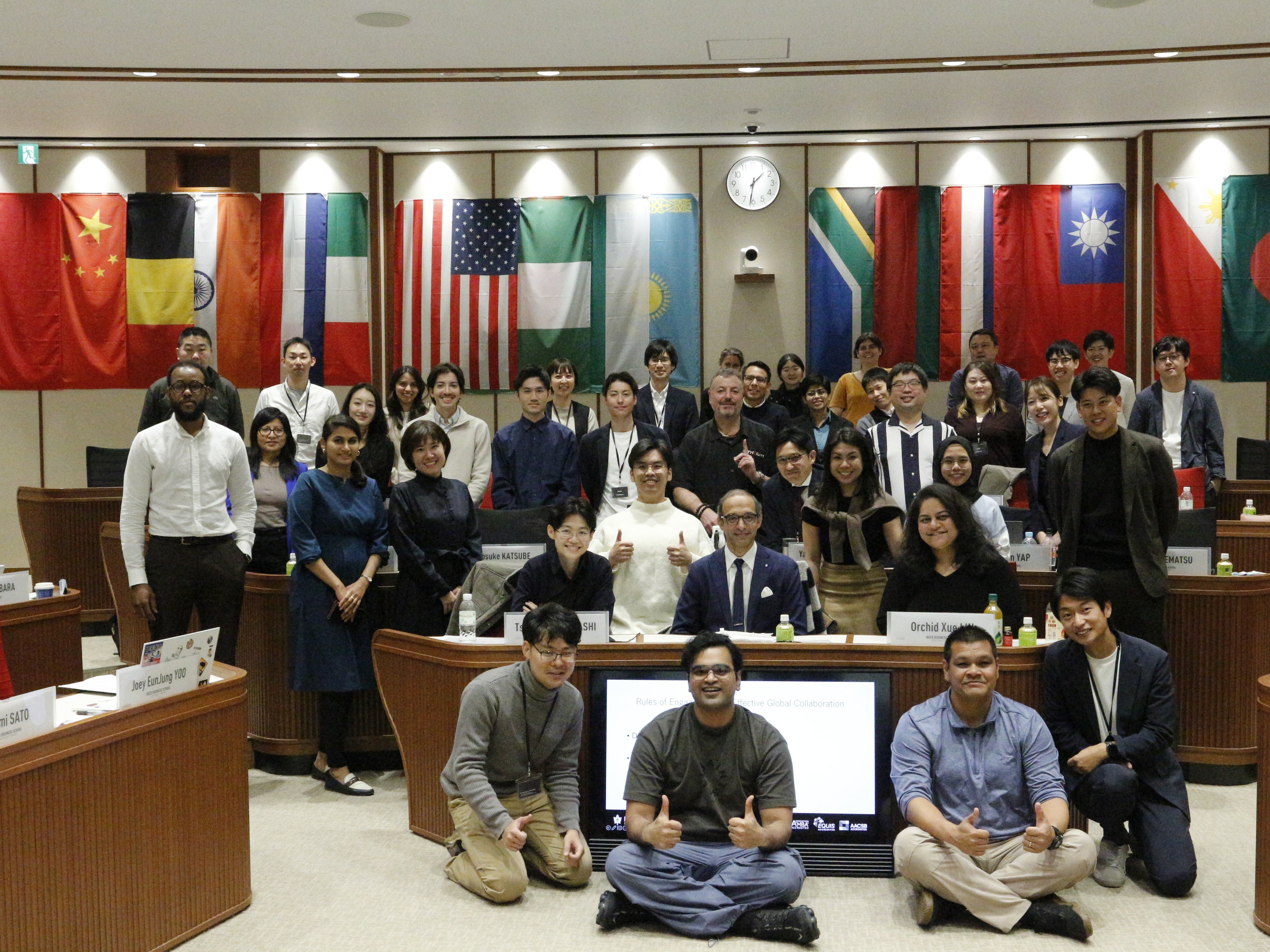 名商大ビジネススクールは、2023年から日経ビジネススクールと共同で開発した、全て英語によって行われるコース「Leading High-Performance Teams〜好業績チームを率いる変革型リーダーシップ〜」(英語コース)を毎年開講しています。2025年度は、2025年11月6〜9日の4日間の合宿型の対面授業、2026年1月23日に「振り返り」を対面授業にて、どちらも名古屋丸の内タワーで実施しました。
