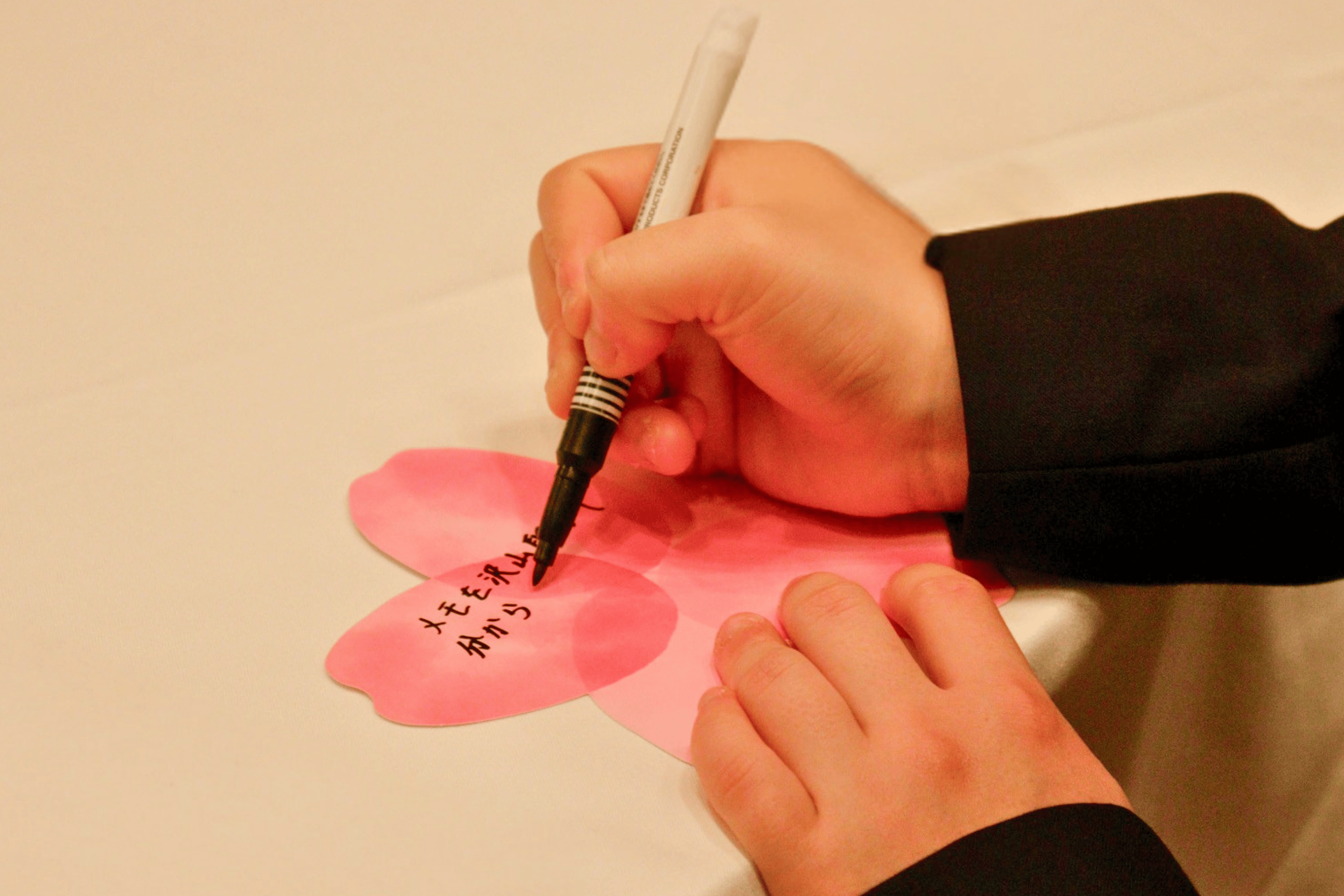 2026年度も入社式では、新入社員が自身の夢を桜に込めて描く取り組みを実施しました。