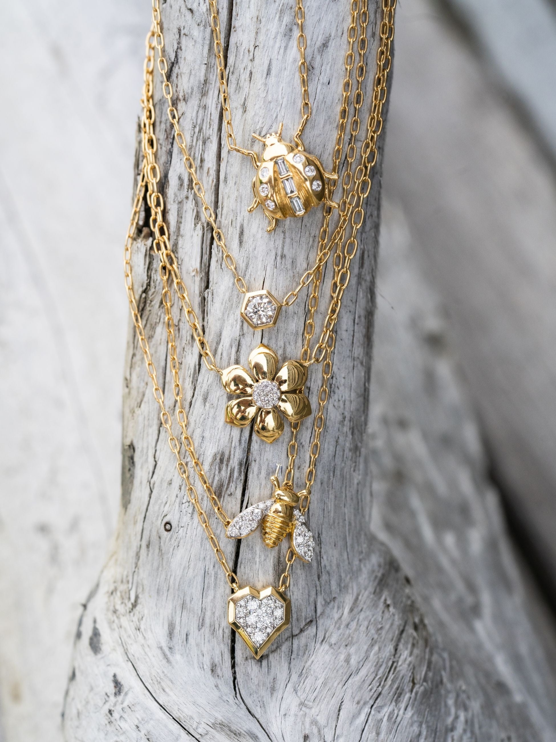 ブランドを象徴するモチーフのひとつには、ミツバチや花など自然から着想を得たデザインがあります。自然の調和やバランスを表現したこれらのモチーフは、ブランドを代表するデザインとして展開されており、ロンハーマンでも非常に人気の高いアイテムです。
