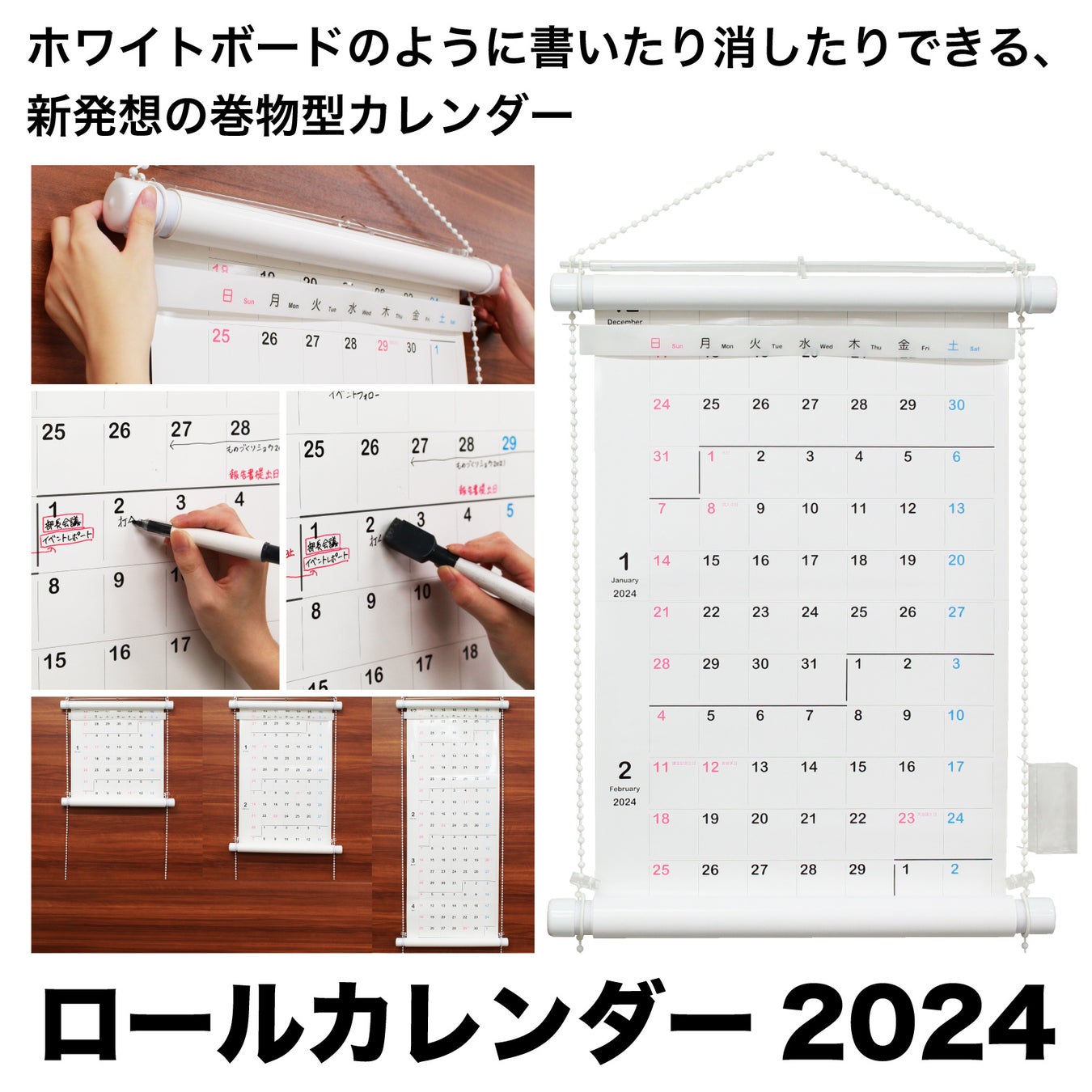MetaMoJiが、ホワイトボードのように書いたり消したりできる、新発想の巻物型カレンダー「ロールカレンダー 2024」を発売