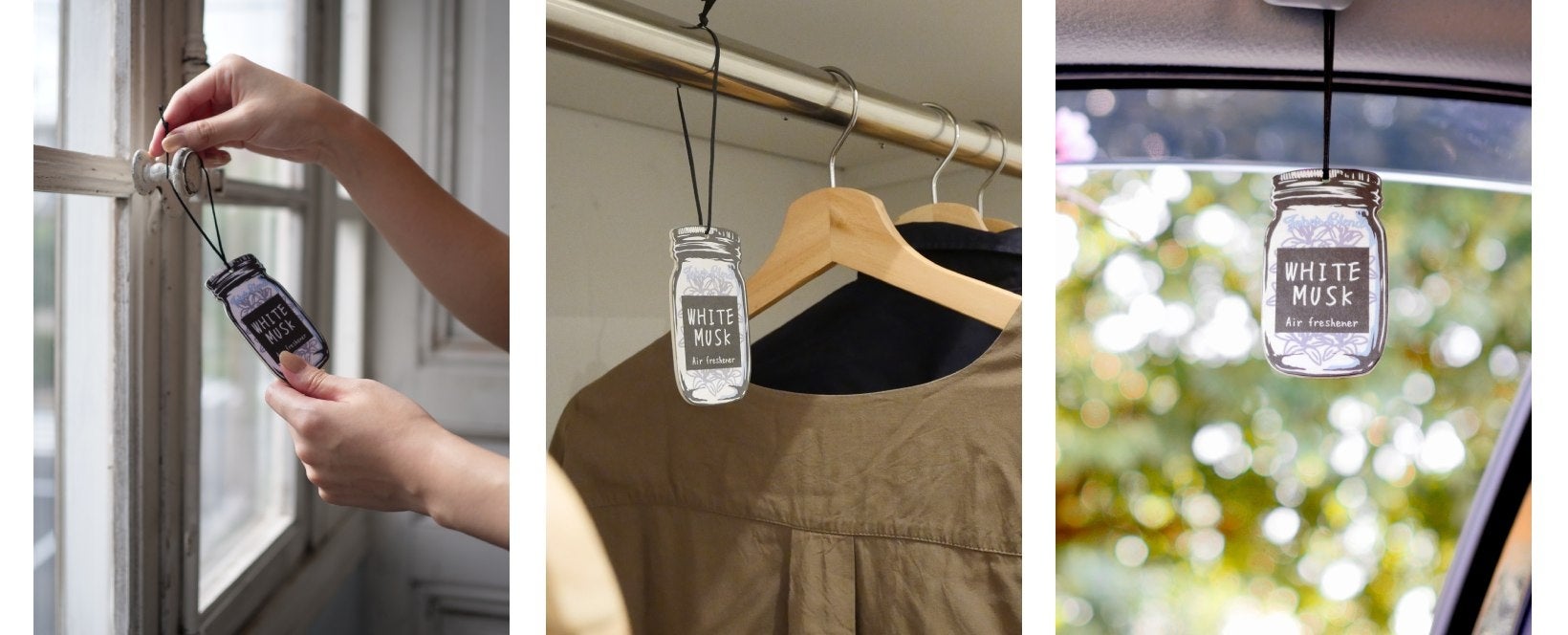 車内やお部屋のドアノブ、窓際、クローゼットなど、様々な場所でお楽しみいただけます。