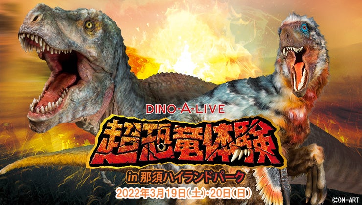 藤和那須リゾート株式会社(栃木県那須町/代表取締役社長:雪本 智史)が運営する“那須ハイランドパ ーク”は、世界中で「今までにない超恐竜体験」を提供している株式会社ON-ARTの恐竜イベント「DINO-A-LIVE 超恐竜体験 in 那須ハイランドパーク」を 2022 年 3月 19 日(土)、3月20日(日)の2日間開催いたします。至近距離で恐竜の生態を見ることができる、この貴重な機会をぜひお見逃しなく!