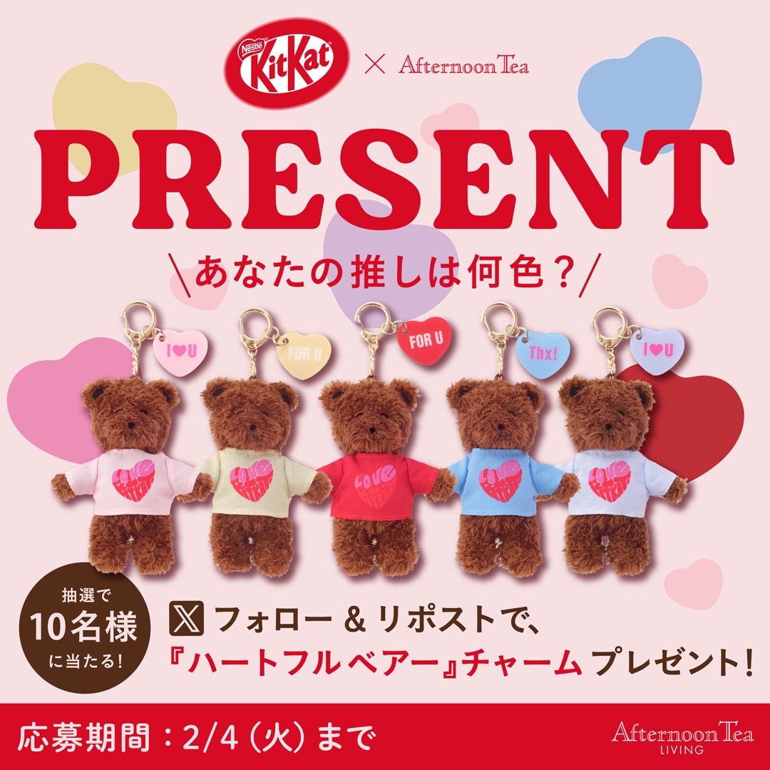 ライフスタイルブランド『Afternoon Tea LIVING(アフタヌーンティー・リビング)』は、バレンタインシーズン限定で登場する、クマの形が大人気の「キットカット ハートフルベアー」とコラボレーションしたオリジナルアイテムを2025年1月29日(水)より、全国のアフタヌーンティー・リビング店舗および公式オンラインストアで販売いたします。