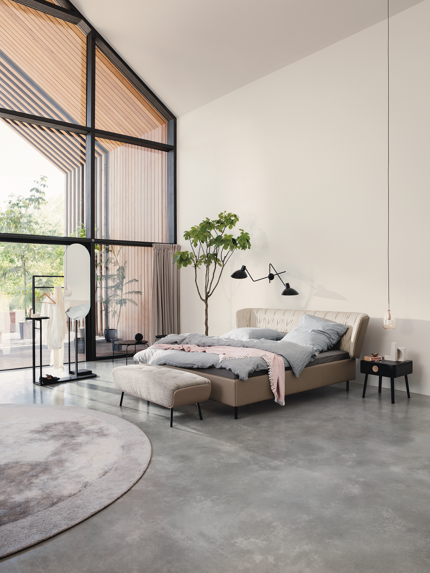 また、本館5階 パーソナルショッピングデスクでは、ロルフベンツがエントランス、客室やカンファレンスルームなどに家具を提供している南ドイツの黒い森“シュヴァルツヴァルト” にあるデザインホテル「FRITZ LAUTERBAD フリッツ・ラウターバード」をイメージ。実際に採用された家具を含めてベッドルームを演出しました。 “Urban Soul meets Black Forest”「都会の魂と黒い森の融合」をスローガンに、黒い森を背景とした現代デザイン空間で上質なサービスが満喫できるラグジュアリーな空間をご体感いただけます。