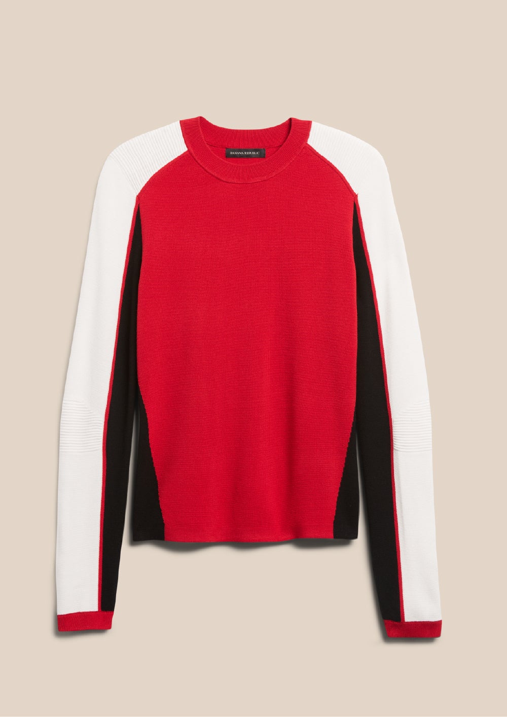 右中:カラーブロックレーシングセーター ¥13,400(税込)