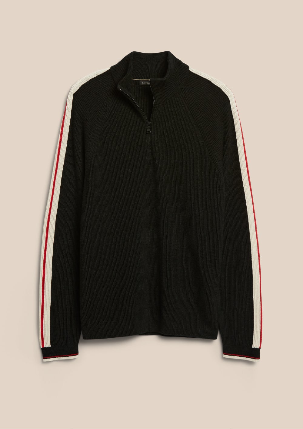 右:サイドストライプオーガニックコットンハーフジップセーター ¥11,400(税込)