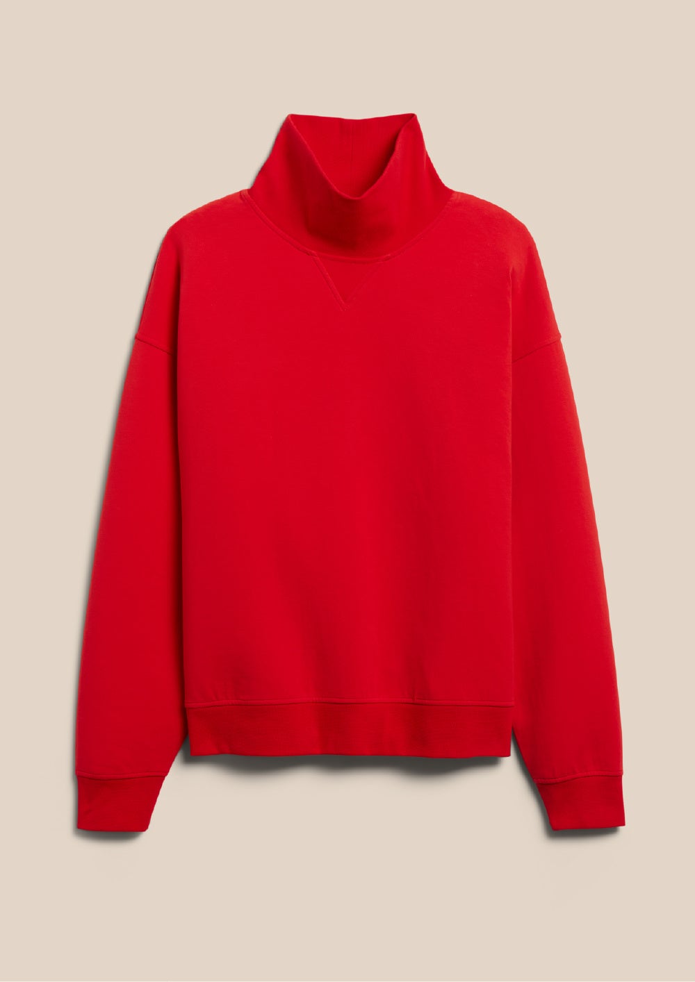 ヴィンテージのバイカースタイルにインスパイアされたライン配色が目を引くカラーブロックセーターなどコーディネートを華やかにするレッドカラーのアイテムが充実します。