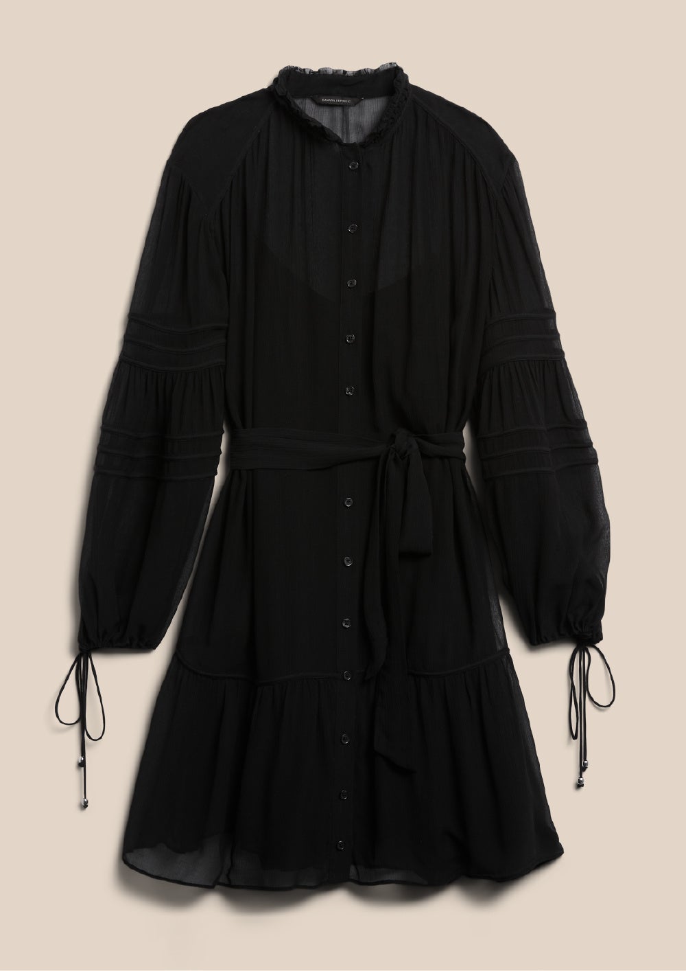 ウィメンズは、やわらかなシルク混で抜群な着心地なだけでなく、着るだけで旬なスタイルに仕上げるボリュームスリーブのシアートップスや同素材でトレンドのロングブーツとも相性の良いロマンティックなミニシャツドレスがラインナップ。
