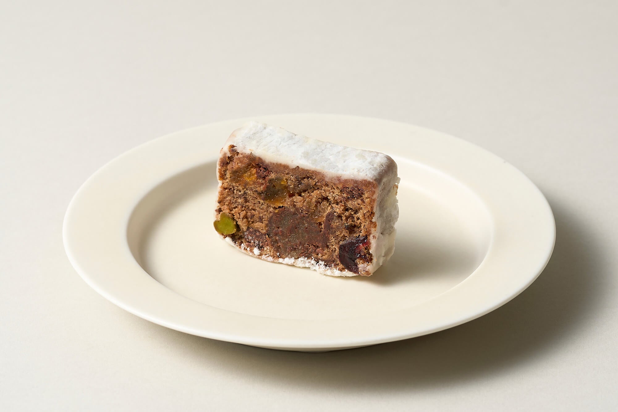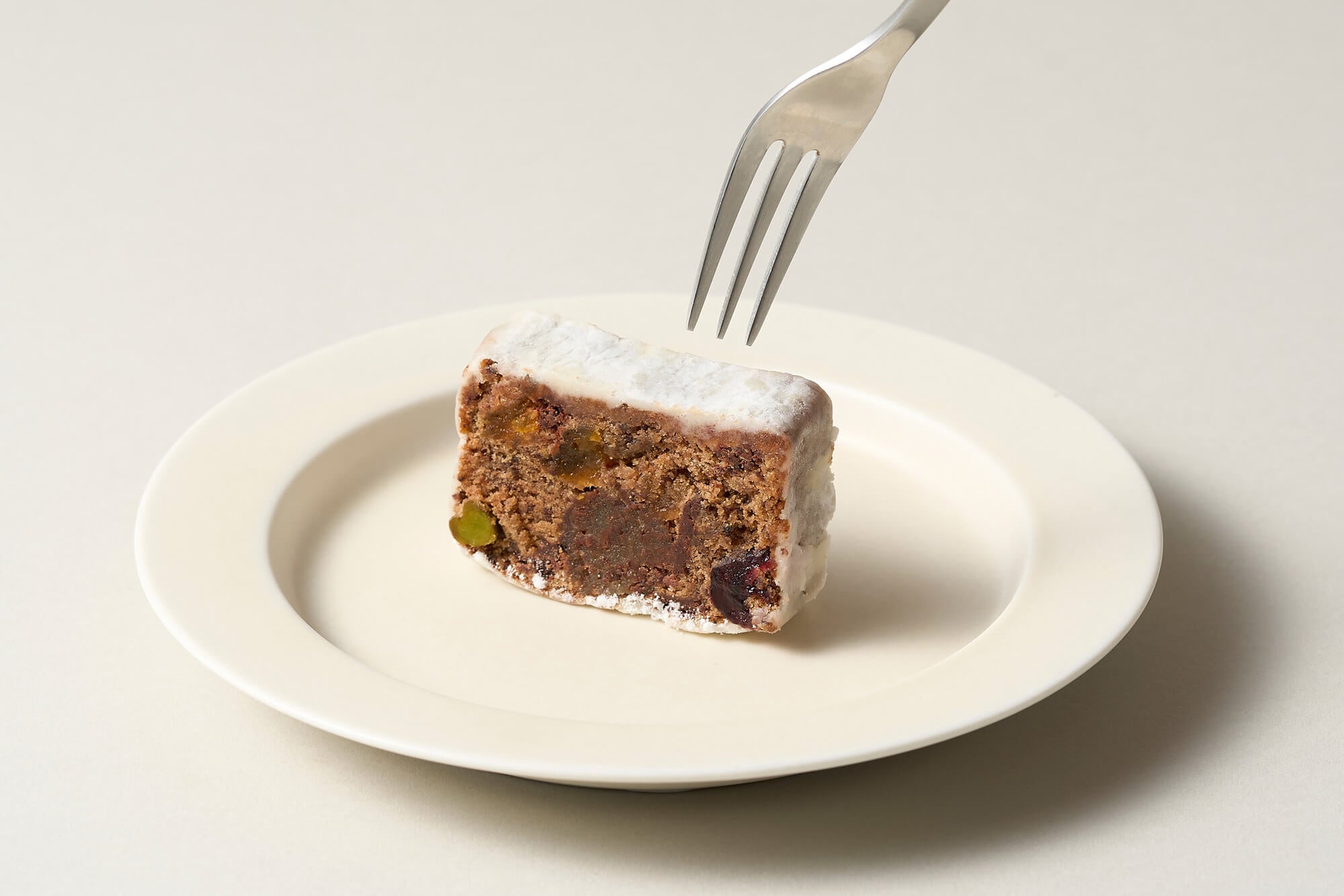香り高い3種のチョコレートに、4種のフルーツとピスタチオを合わせた、チョコレートを存分に楽しめるシュトーレン風ガトーショコラです。