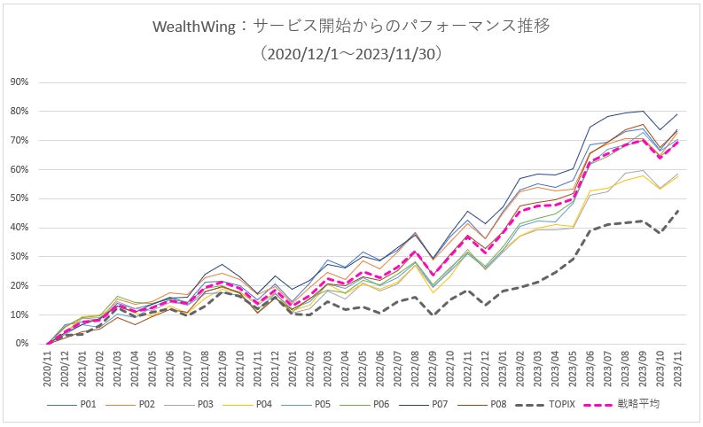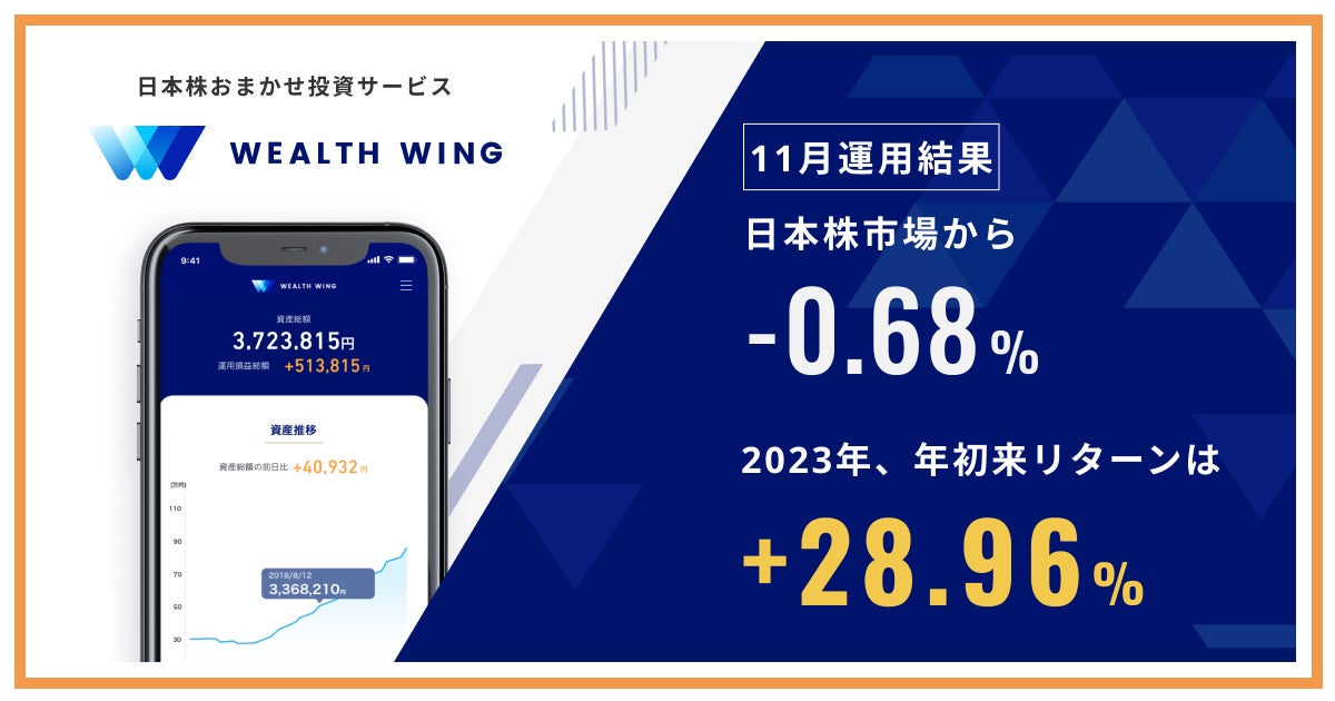 Finatextグループの日本株おまかせ投資サービス『Wealth Wing(ウェルスウイング)』、11月は日本株市場を0.68%下回る運用結果に