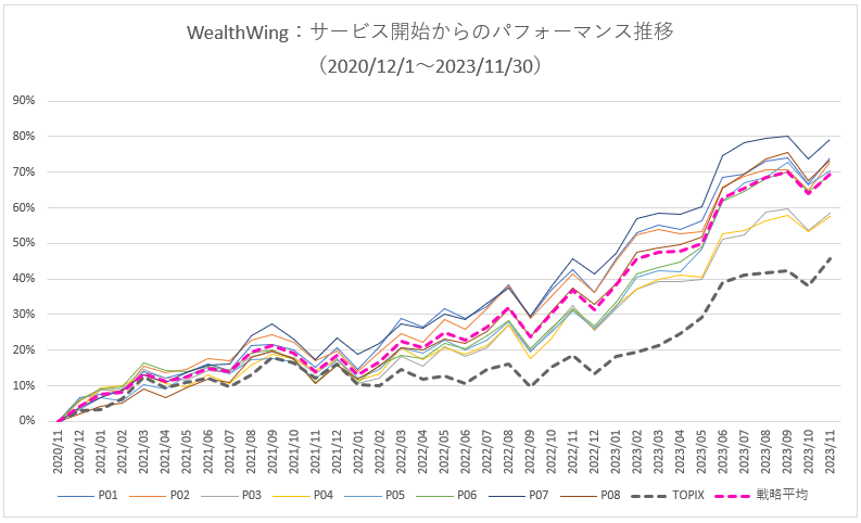 【より詳しい運用状況などはWealth Wingコラム「2023年11月の運用実績をご報告!!」をご覧ください】
