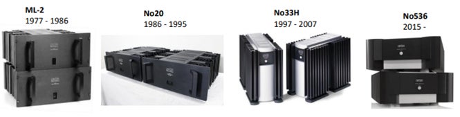 本製品の開発にあたり、Mark Levinsonチームは過去のいわゆる“銘機”と謳われたモノラル・パワーアンプのデザイン・設計などを振り返りました。そのどれもが以降の製品に多大な影響を与えた製品群です。「ML-50」の名前の由来は、1977年から1986年に製造された最初のパワーアンプである「ML-2」です。また、本製品の大きなフロントパンネルハンドルは、1986年から1995年に製造された「No20」とそのアップグレードモデルである「No20.5」、「No20.6」からインスパイアされました。ブランドとして初めて“リファレンス”の名を冠したパワーアンプ「No33」(1994-2003)および「No33H」(1997-2007)は、「ML-50」の強固な基盤を提供する防振アイソレーション・フィートのアイデアの元となり、ガラス製フロントパネルと赤いバックライト付きロゴデザインのコンセプトは、2008年から2019年に製造された「No53」から取り入れられました。そして、「No536」(2015年~)パワーアンプは、本製品のオーディオパフォーマンスのプラットフォームとなっています。