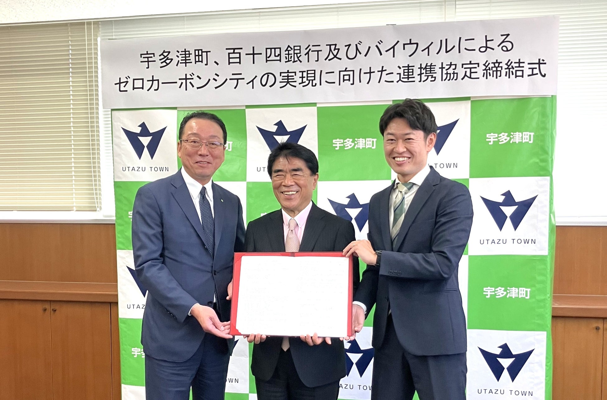 日本全国47都道府県のカーボンニュートラル実現を目指す株式会社バイウィル(本社:東京都中央区、代表取締役社長:下村 雄一郎、以下「バイウィル」)は、香川県綾歌郡宇多津町(町長:谷川 俊博、以下「宇多津町」)、株式会社百十四銀行(本店:香川県高松市、頭取:森 匡史、以下「百十四銀行」)と、「ゼロカーボンシティの実現に向けた連携協定」を締結しました。
