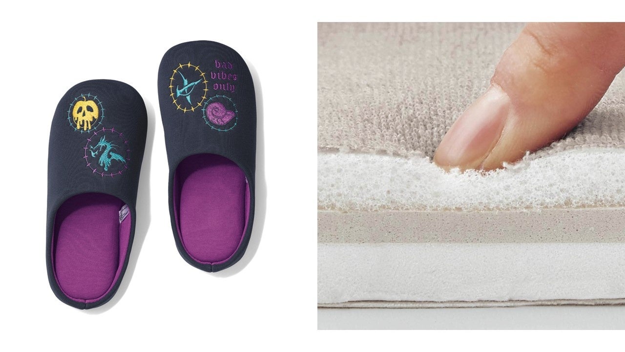 ・「ヴィランズ」に関係するモチーフが刺繍されているスリッパ