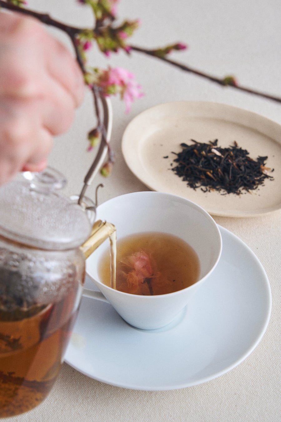 まるでお花見気分を楽しめるような紅茶が登場。華やかでさらっとした飲み心地の味わいは、デザートとの相性もぴったりです。紅茶に浮かぶ桜の花びらが、目でも楽しませてくれます。
